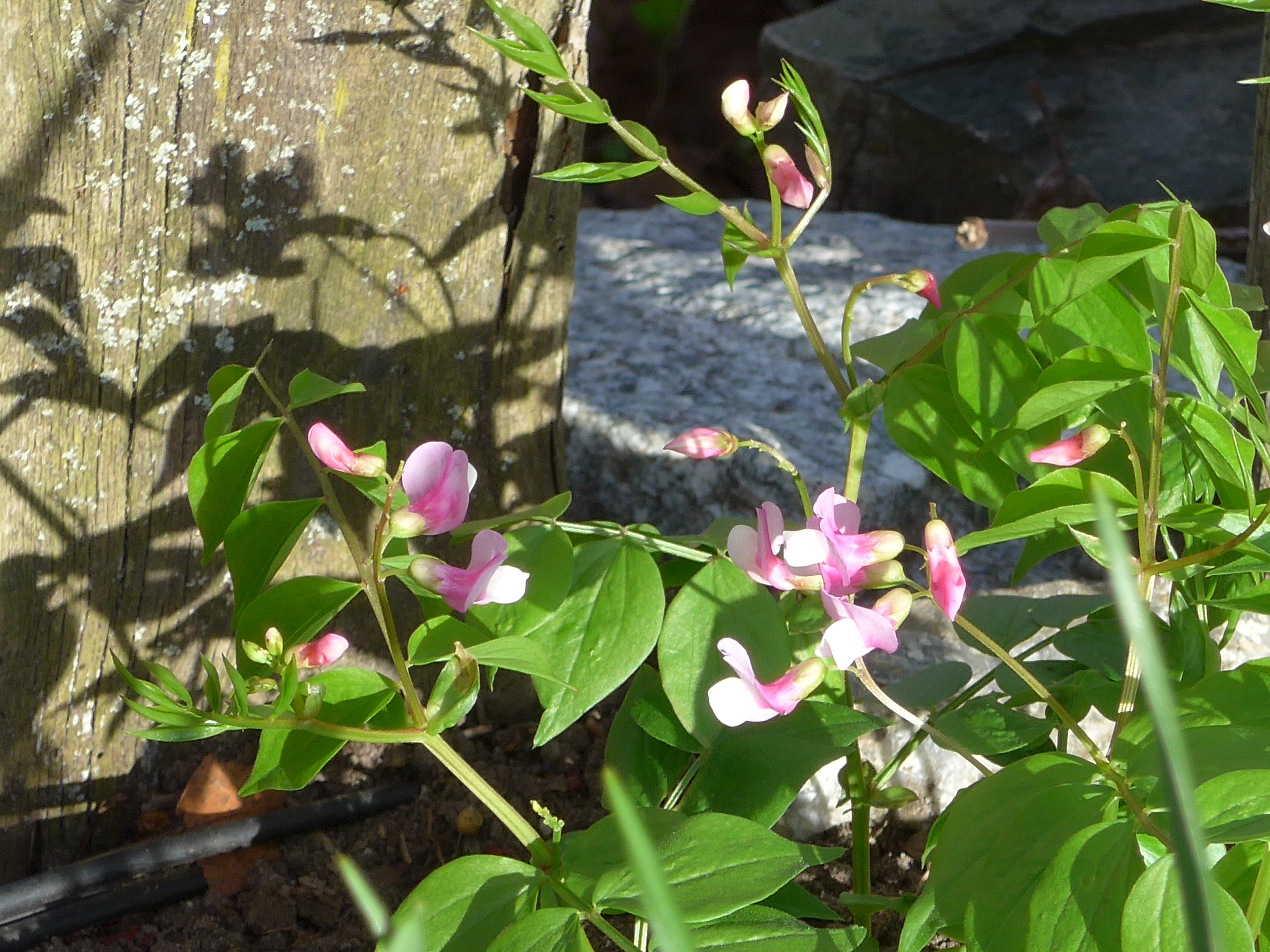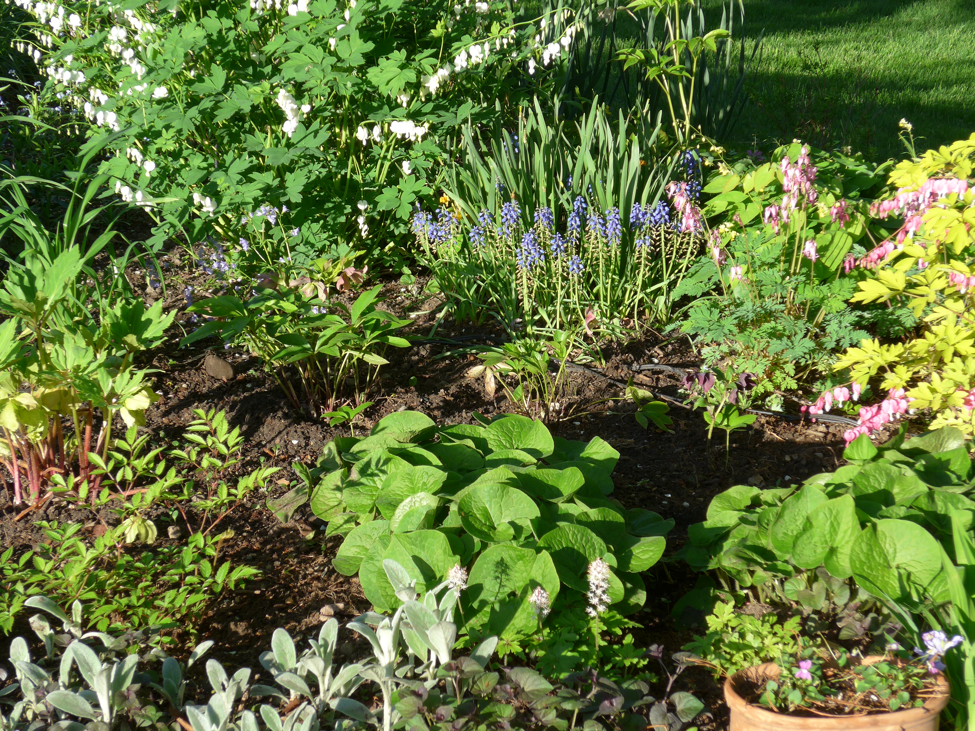 Flowering almond: when I was in 1st and 2nd grades we lived in an old Victorian house in Keene, New Hampshire. There was this beautiful pink shrub in the side yard that I adored.. one of my earliest garden memories. I always wanted one but never got around to getting one. When we moved to this house in 2001, there was a flowering almond in the garden. I moved it from its original site to where it now blooms.. simply spectacular.