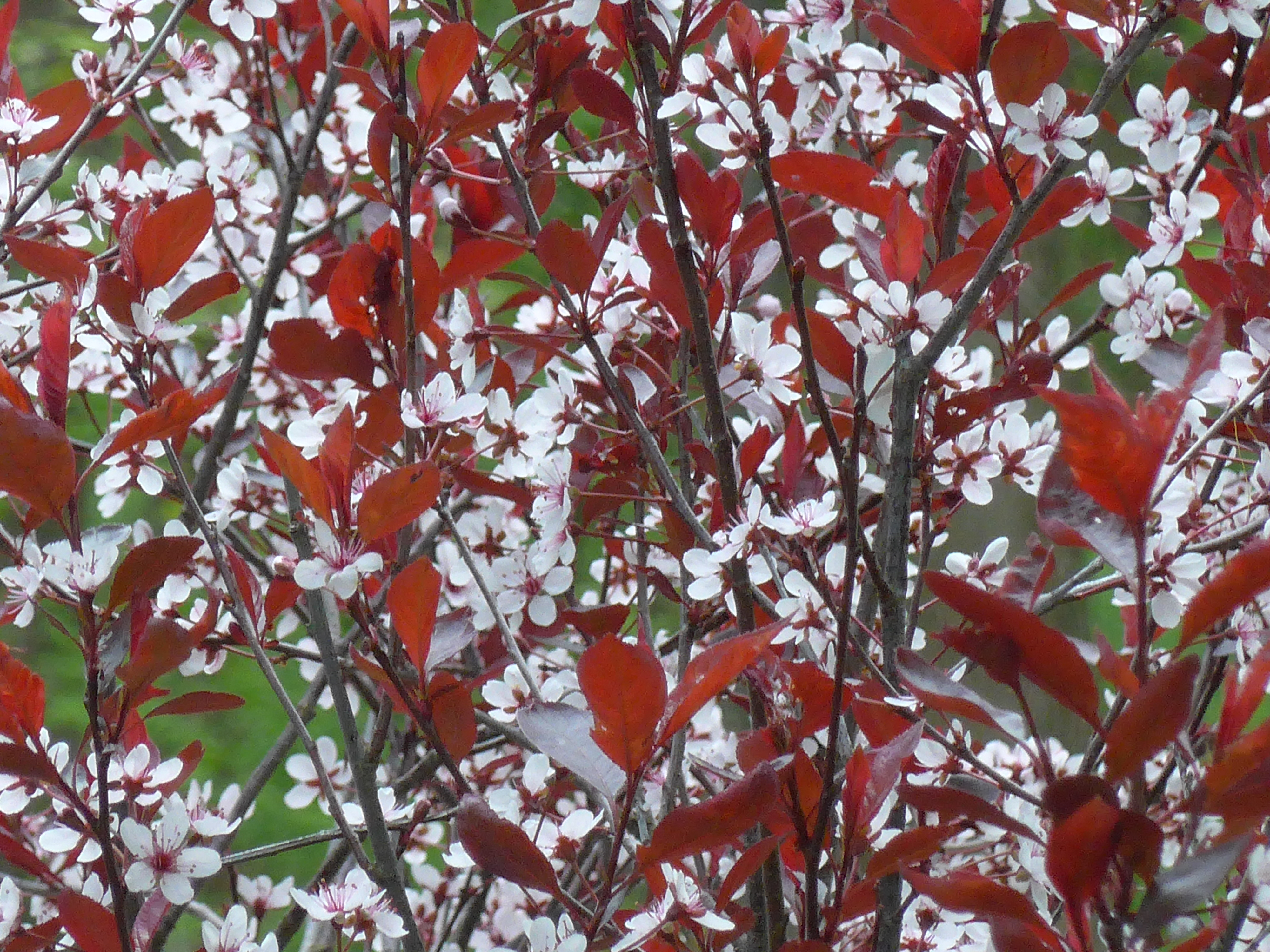 Sand cherry on the left, flowering almond on the right