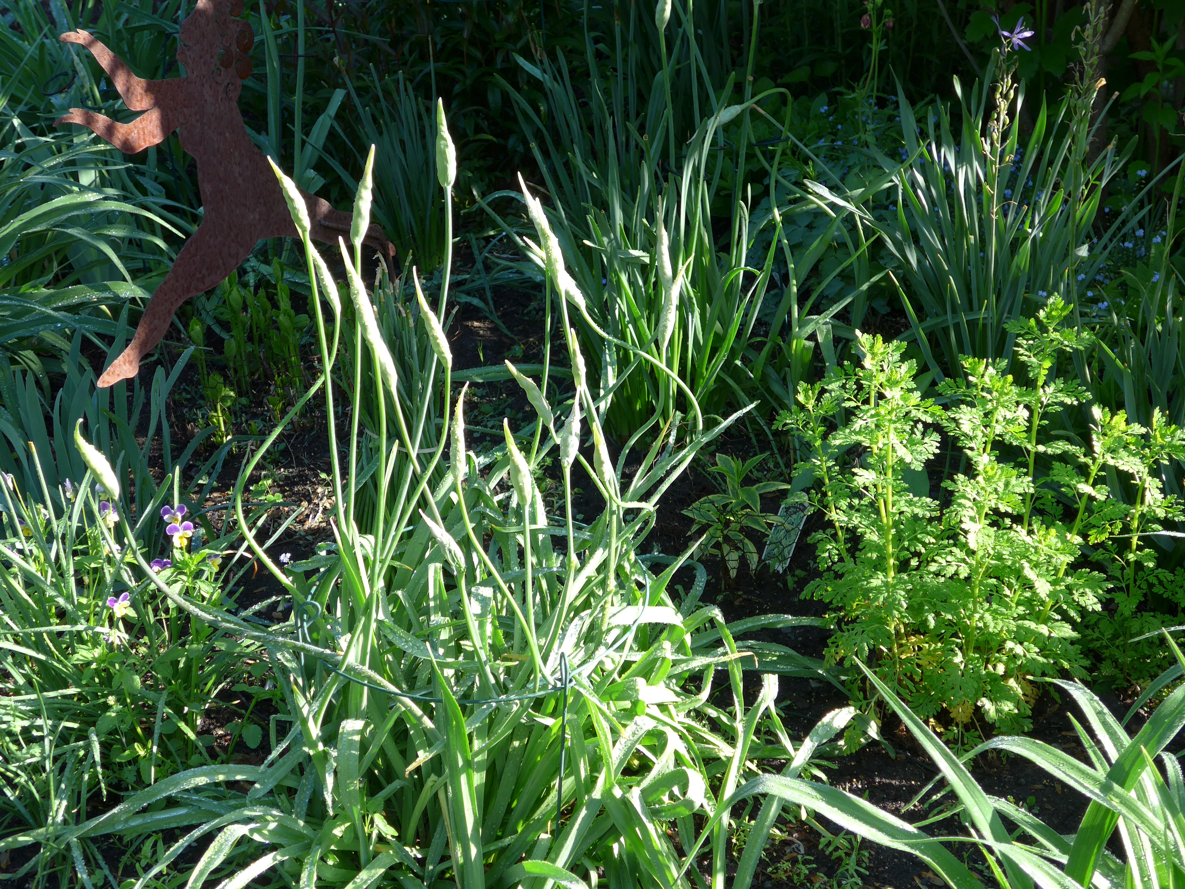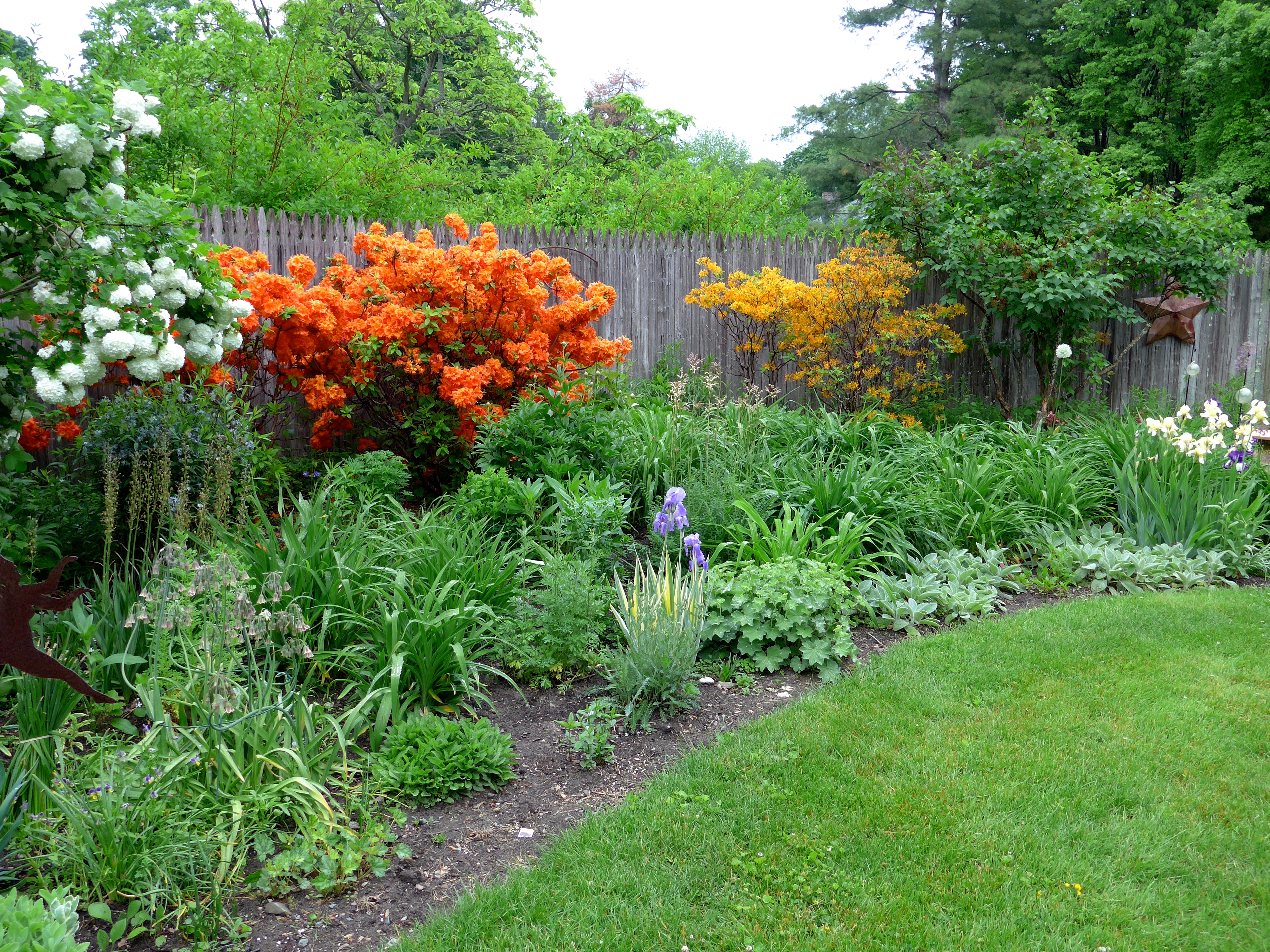 The garden is full of color, unfolding buds, and promise of things to come. There are also invasions of bittersweet in the lupine meadow, red lily leaf beetles, and some ugly little green caterpillars eating the rhody leaves. Ack. I’m trying to focus on the good stuff.