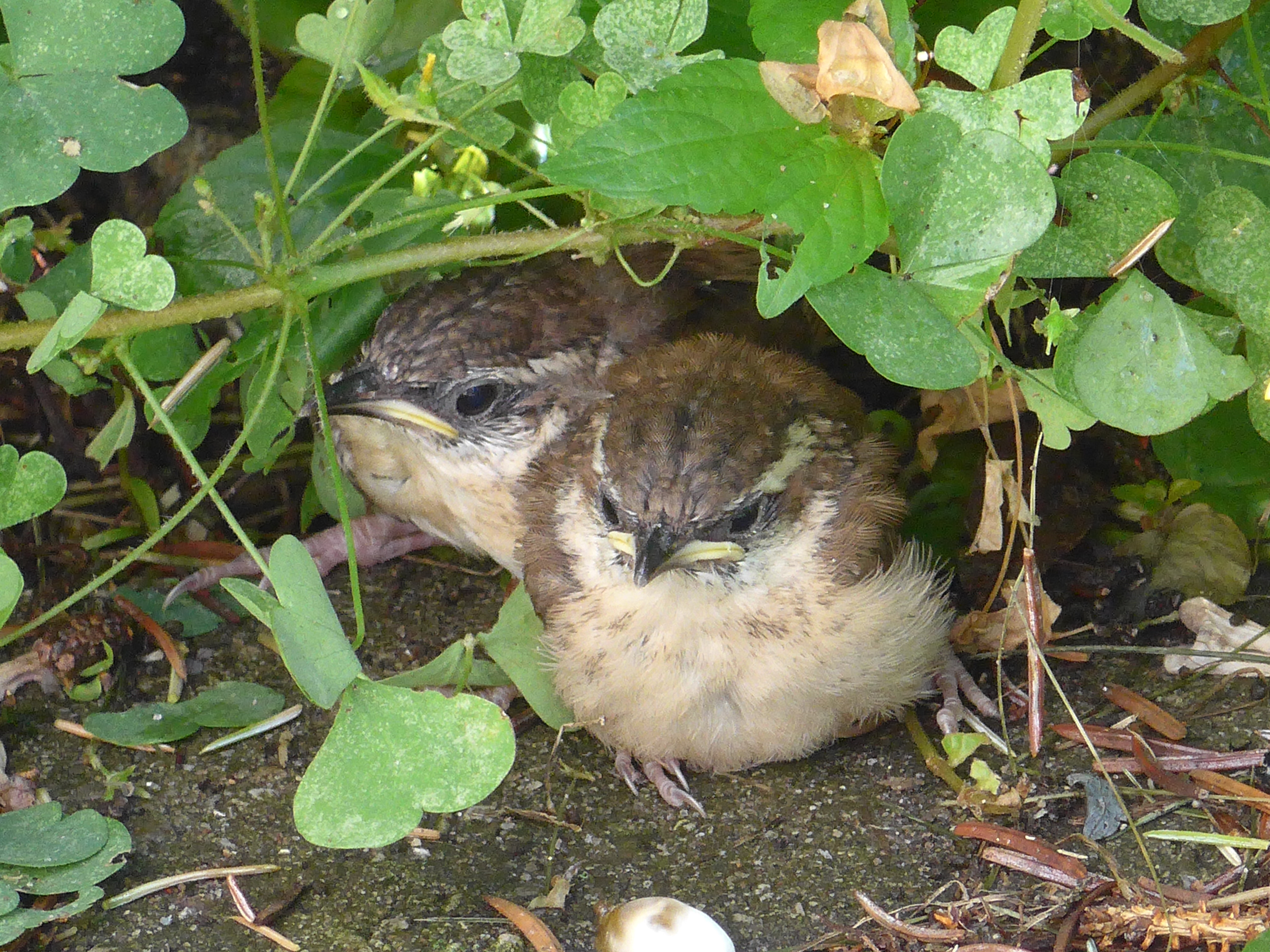 The Carolina wrens getting breakfast