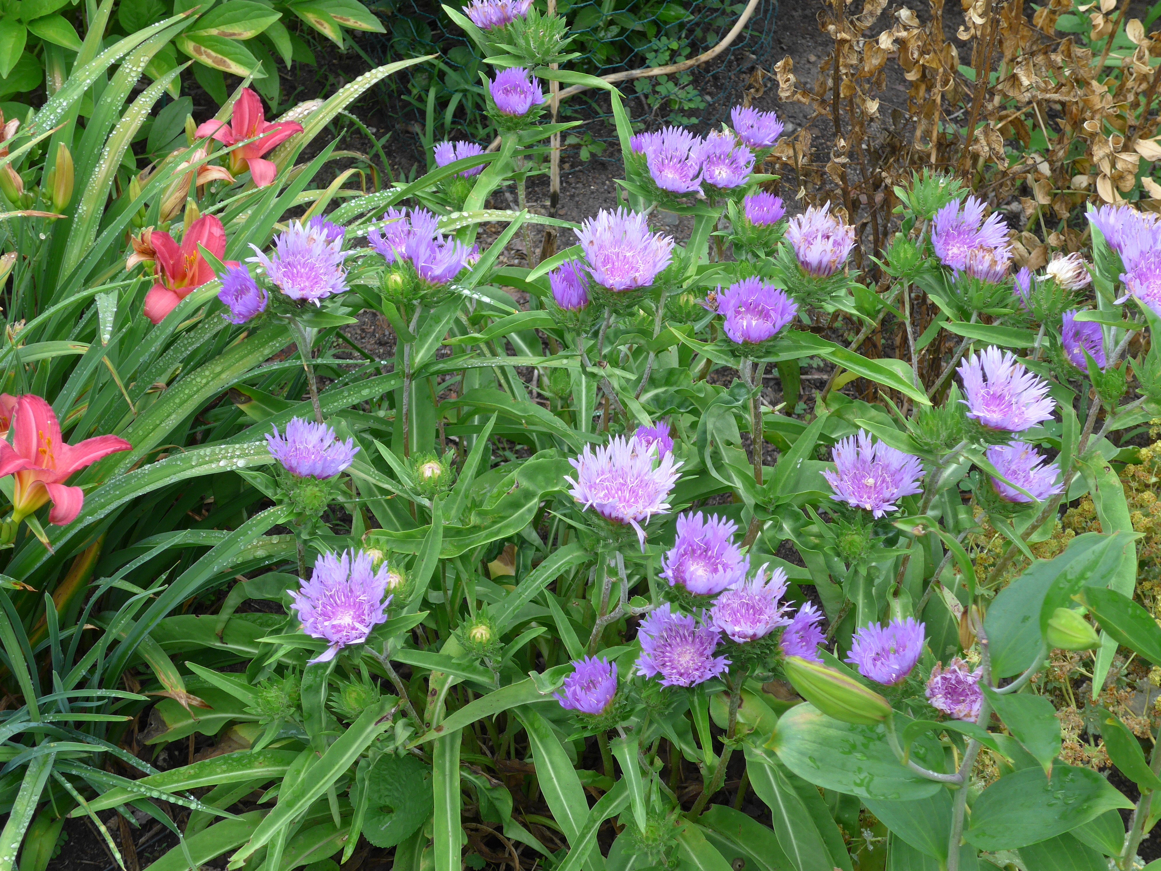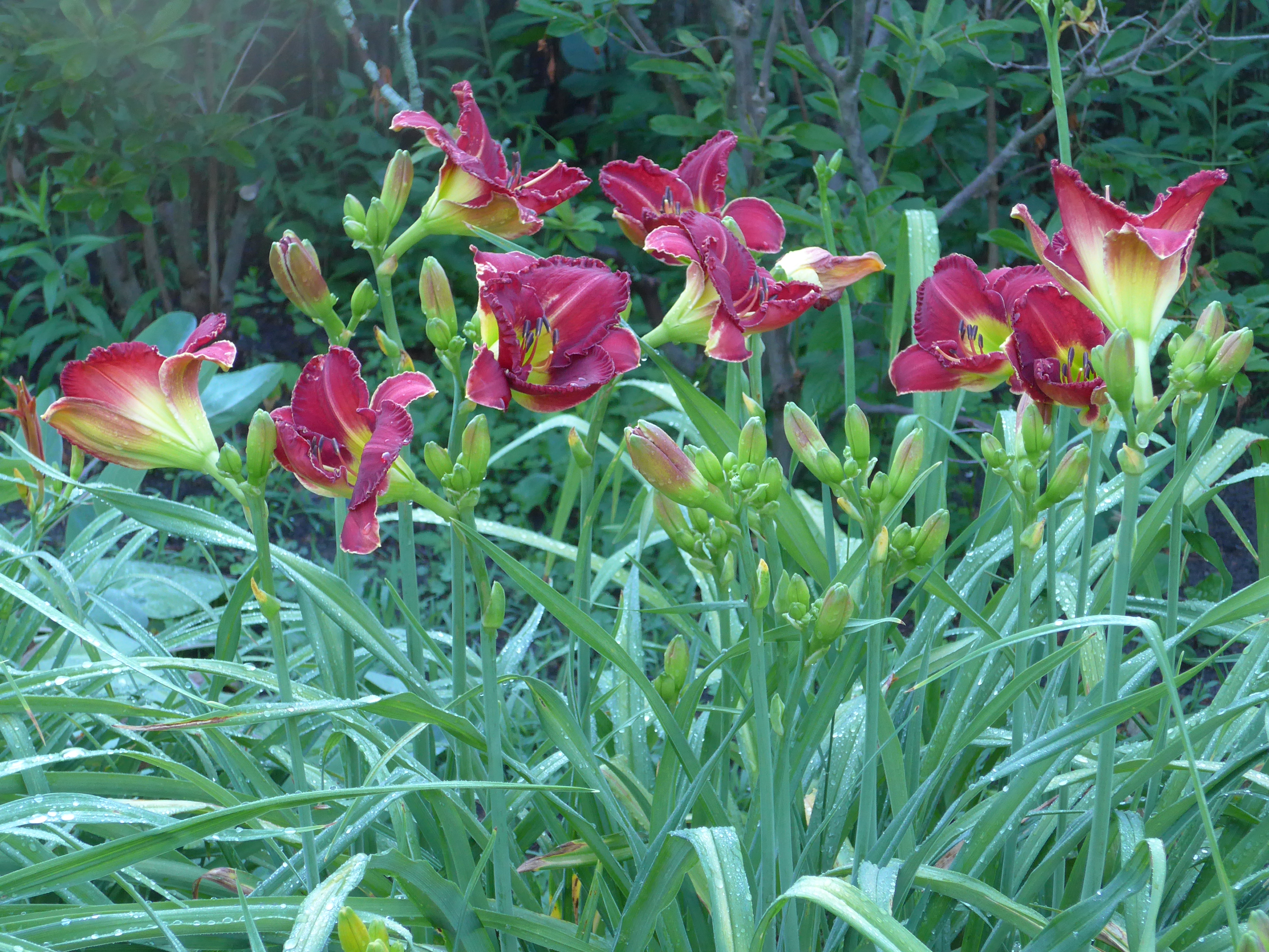Gardening is a challenge this year. Drought, chipmunks, rabbits, heat…the list goes on. We were away for 2 1/2weeks (trip to Ireland) so the garden had to fend for itself. Now that we are back I have been watering, fencing off some areas and otherwise letting nature take its course. Many plants are stunted or were eaten or succumbed to the heat. The rabbits did not eat the daylilies though and they are in their glory now.