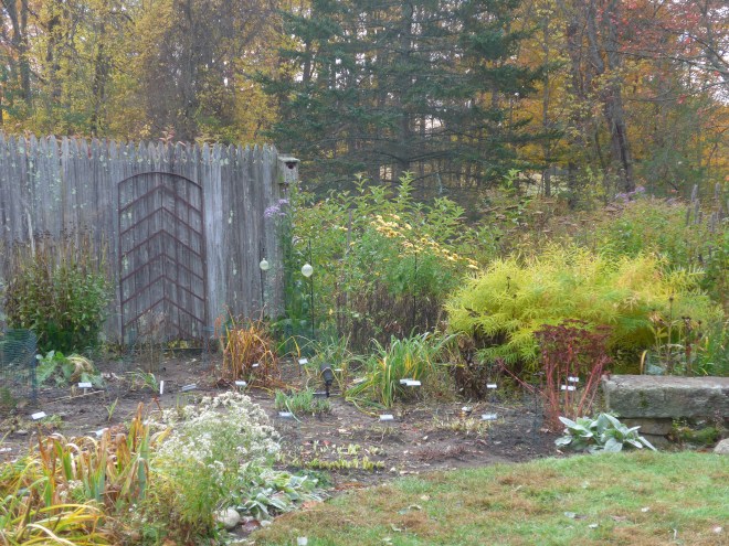 The growing season is about over in my neck of the woods. There are still mums and asters and a few other things blooming, but I’ve begun the seasonal garden clean-up. The garden looked like this in mid-October.