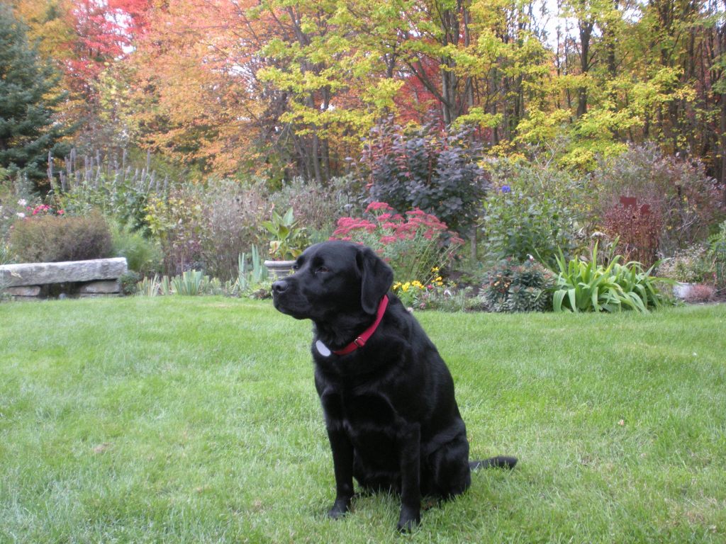 I wish it was spring, but not for the usual reason. Whenever I am having a tough time or experience loss, I go out in my garden and work, and I find that it helps tremendously. Our sweet 13 year old labrador died suddenly last week. Since there is still snow on the ground, and it is January, there isn’t much gardening I can do. My dog loved the garden. She rolled around in the grass or snow, chased rabbits, deer and turkeys, helped herself to their leavings (ugh), posed for pretty pictures, and kept me company. She just loved to sit on the back step and sniff the air. There is a big hole in my heart and in my garden. These are a few photos of happier times.