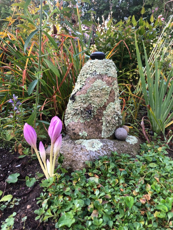Well there goes summer. We had some light frost a few days ago and now have a few days of warmth – what we called Indian Summer when we were kids. Hummingbirds have gone, but we have seen bluebirds. Cardinals, chickadees, finches, nuthatches, titmice and “ahem” chipmunks are visiting the feeders. We put them out last week, but bring them in at night since the black bears are around and fattening up for winter. The drought continues, so I have had to resort to hand watering in order to keep many plants alive.