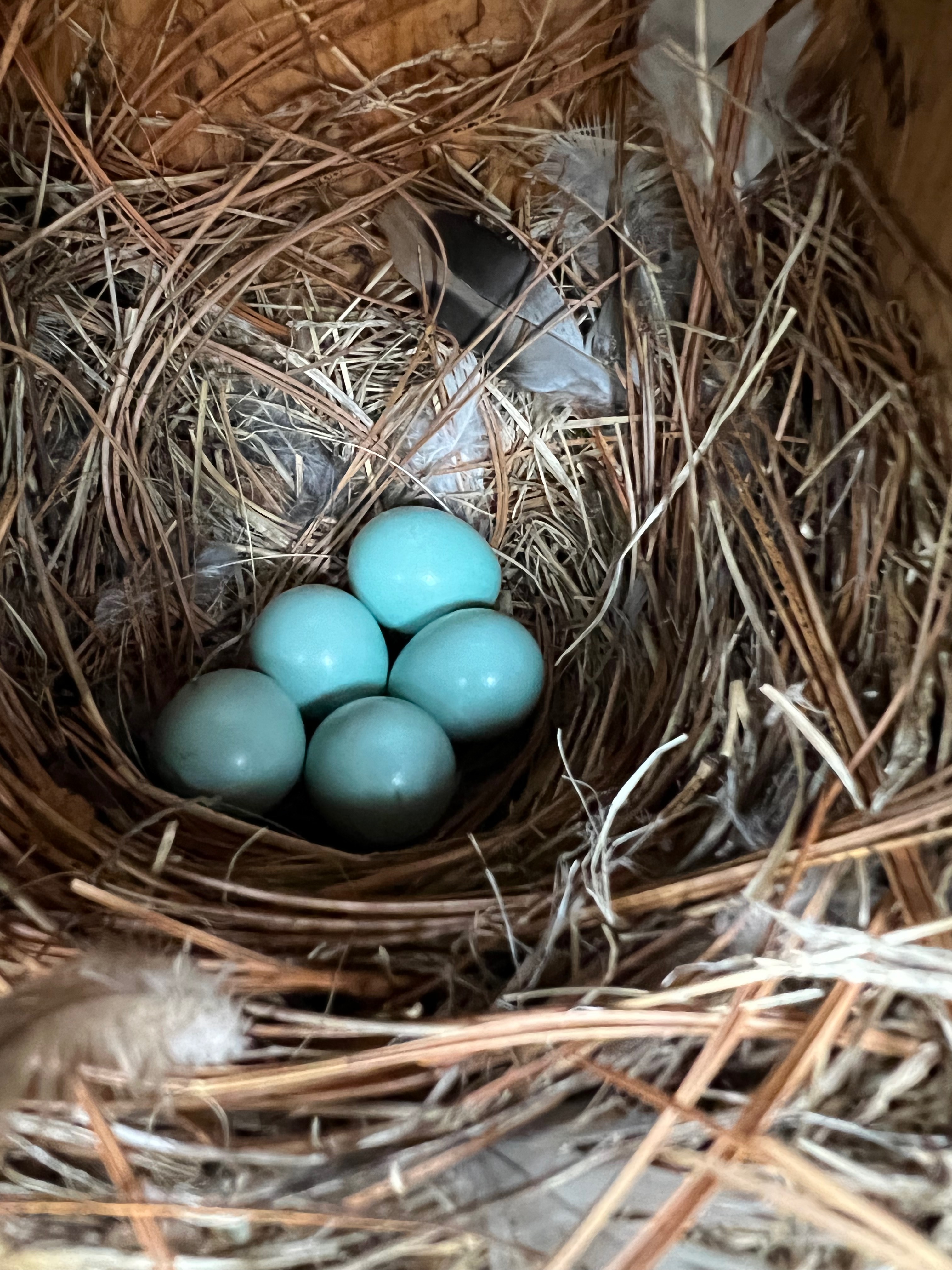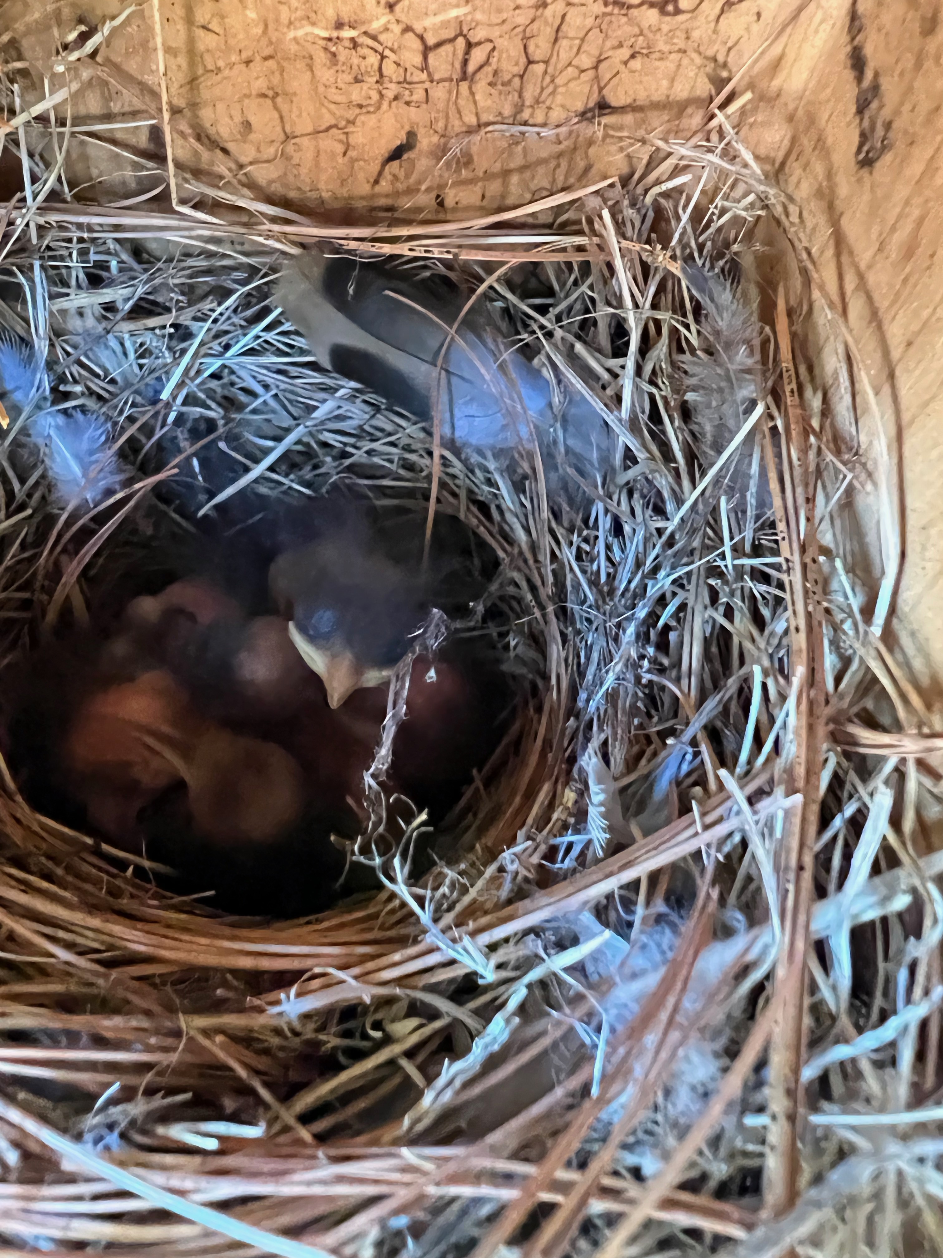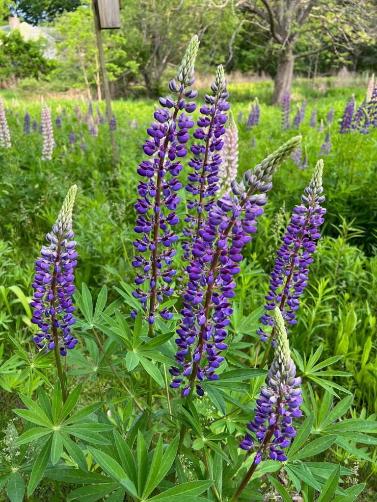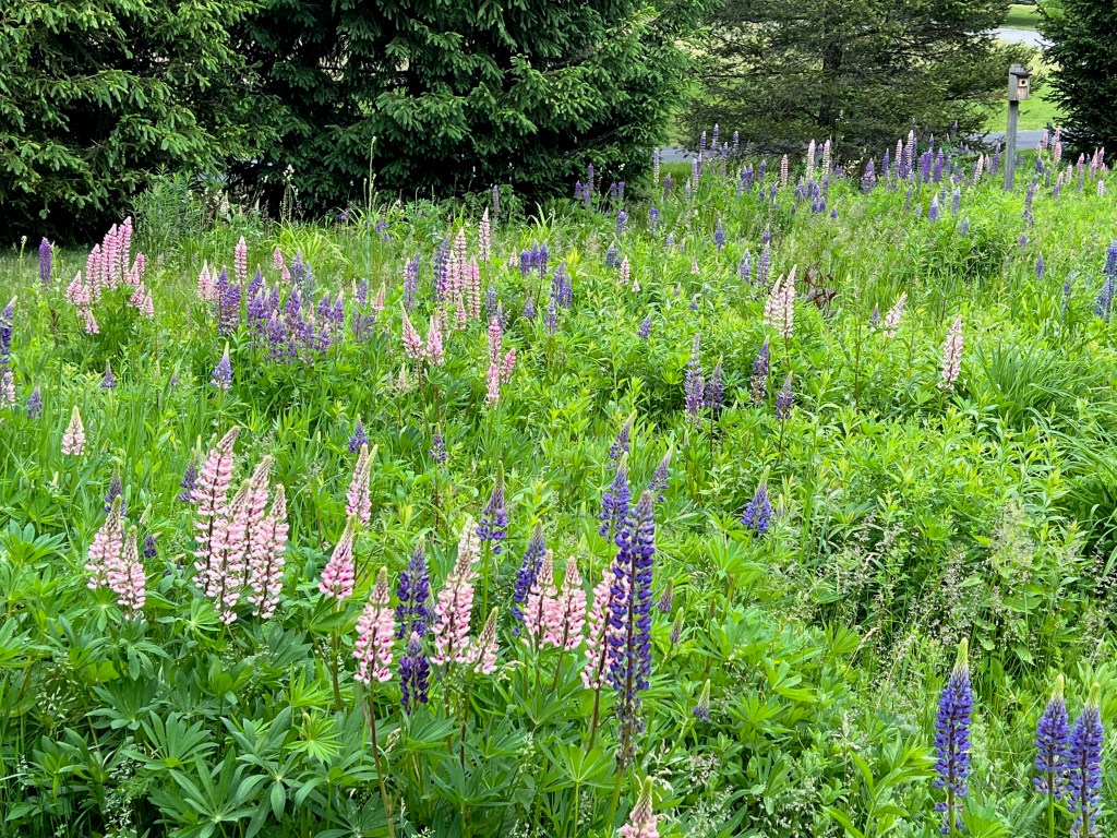 The lupines in the meadow are blooming. The bluebirds and cardinals have fledged. The veggie garden and containers are planted. Now its weed, water, and enjoy.