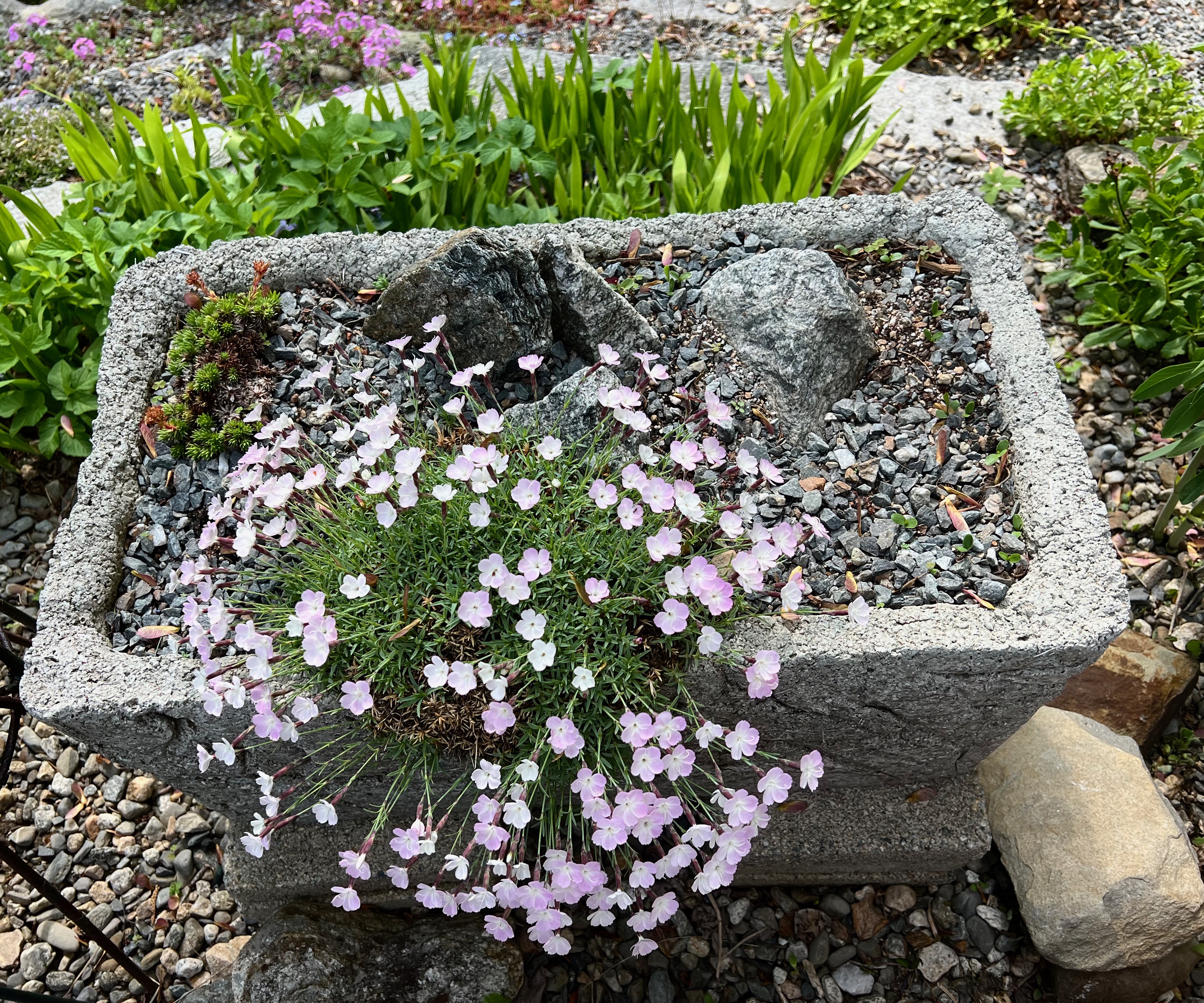 May has been a roller coaster so far. It has been hot – in the 80’s and tonight we are going to have a freeze. It has been a very active season in the garden. Bluebirds are nesting in their houses, robins in the cedar outside my window, and Carolina wrens in a plant on the porch. The orioles have returned for their grape jelly treats and hummingbirds entertain us all day long. A fox has been hunting daily (she has 5 kits nearby).