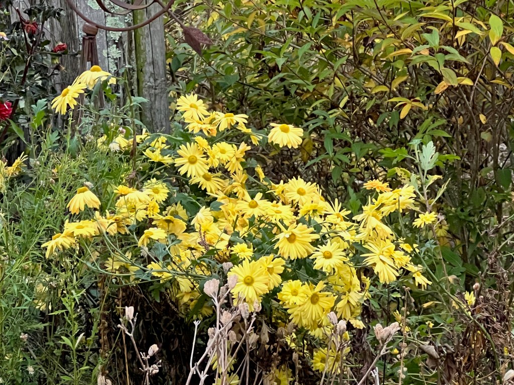 November is winding down. We had frost and a bit of snow. The dahlias have been lifted and are settled into their winter storage. The Brugmansia was pruned and brought into the basement so that it can go dormant until spring. I have cut back the things that get mushy like iris, daylilies, allium and hostas. The woodier perennials with seed heads will be left up until spring. Bird feeders have been put out, and we have lots of woodpeckers, bluebirds, finches, sparrows, juncos, titmice, chickadees, blue jays, and cardinals.