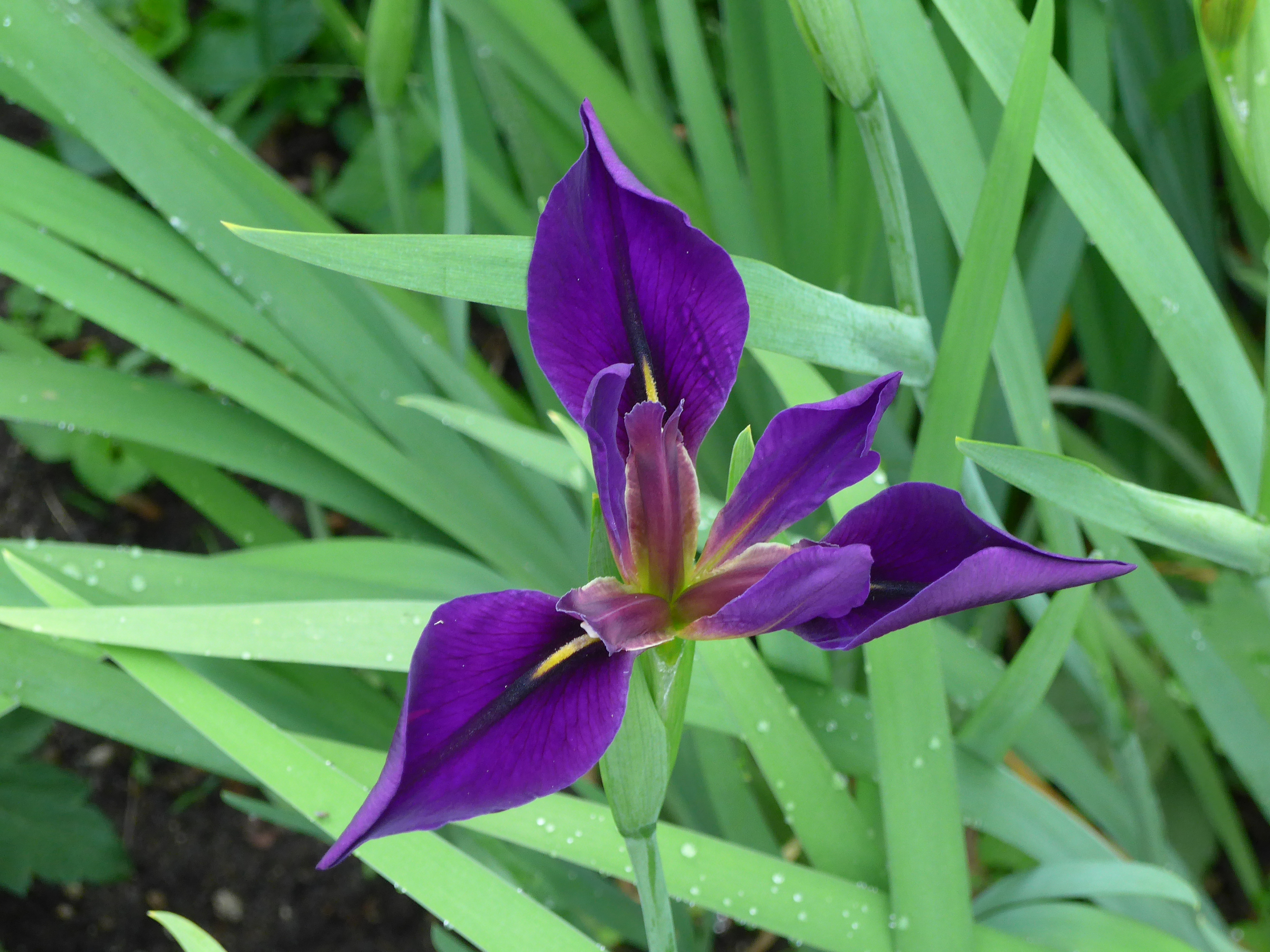 This is the Louisiana Iris I got from friend Lee many years ago.. one blossom opened for me the morning we left for Scotland . The whole patch has grown to be 5 feet across.. need to do some thinning..