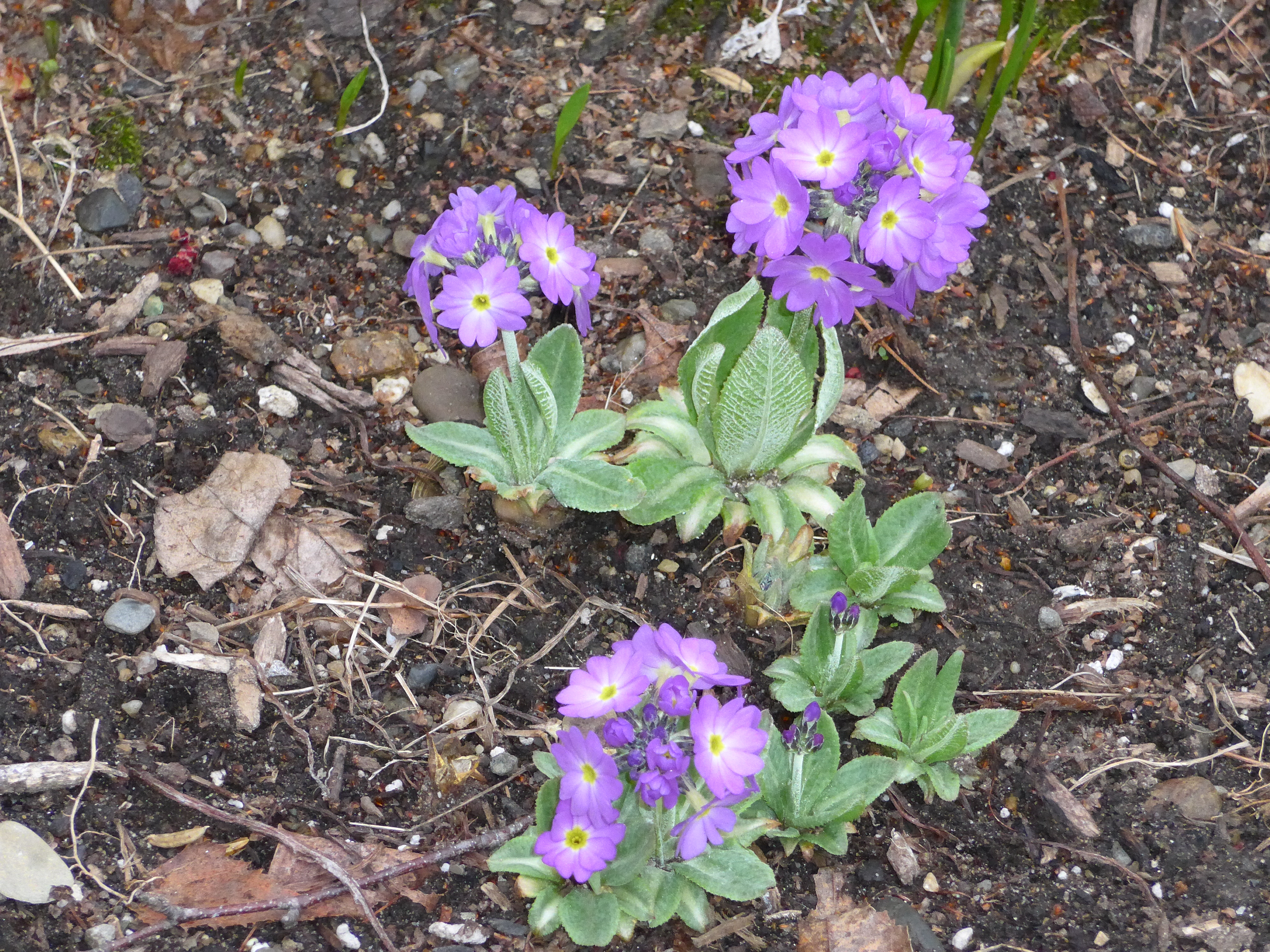April showers are here (and I’m hoping they will remain rain showers and not become snow showers). We were away for a week and the warm weather certainly made a difference in the garden. When we left last Tuesday things were just poking through the ground. Now there are daffodils with buds on them just ready to open up. Blue scilla, crocuses, hellebores, and a few primroses are blooming, and there’s all kinds of stuff budding. The next few days will be cold and that will slow the blooming but there should be a good show pretty soon. The alpines in the troughs are beginning to come back to life too…. more on alpine troughs next week.